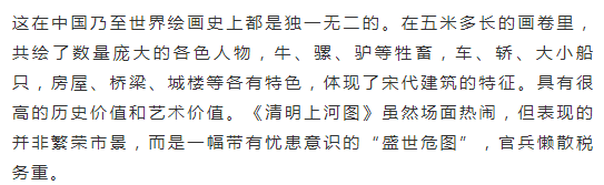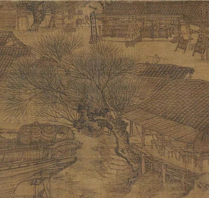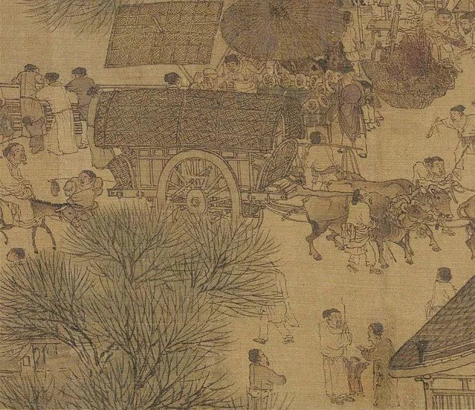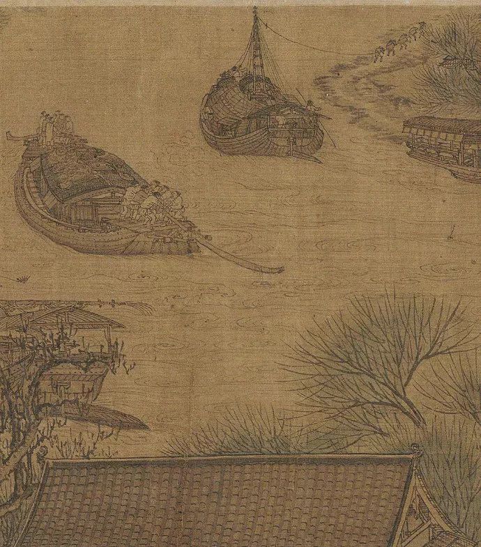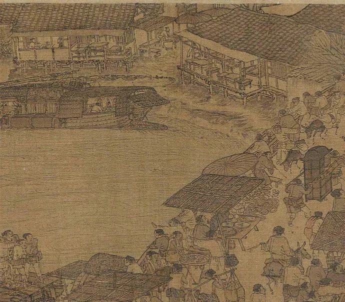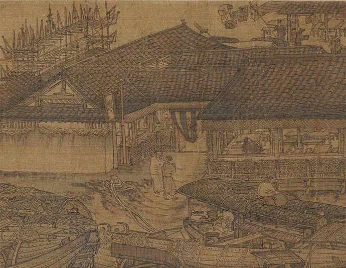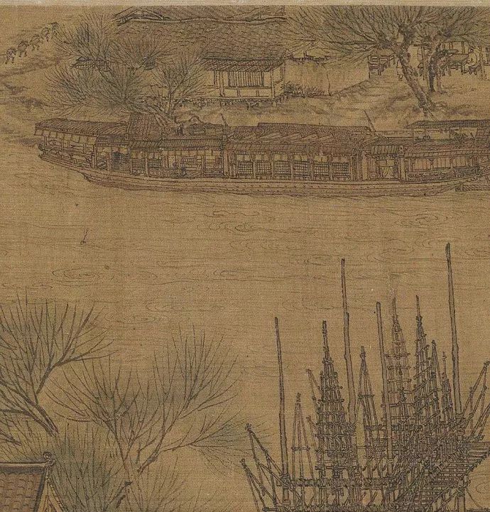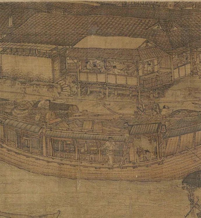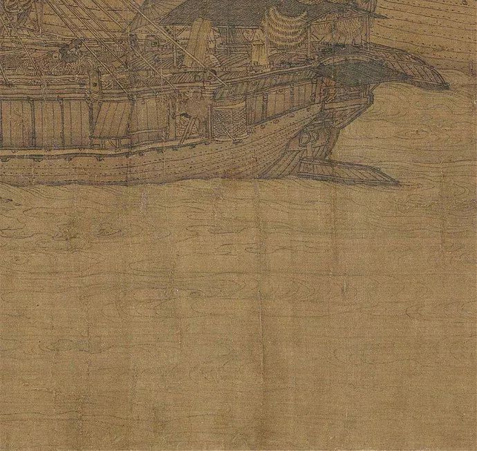 画卷中有很多船,其中大量的是运粮的私家船。表面看来这是一种商贸兴隆的景象,实则反映出当时政府的一项重要失误:宋徽宗将大量运粮的官船用去运送花石纲,使得粮食运送出现问题。私船趁机而入,并渐渐把持住了城市的粮食市场,进而操控粮食价格。