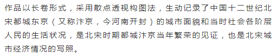 清明上河图,中国十大传世名画之一。清明上河图宽24.8厘米、长528.7厘米,绢本设色。为北宋风俗画,北宋画家张择端仅见的存世精品,属国宝级文物,现藏于北京故宫博物院。
