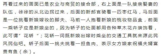 从朱元璋时期开始,清明扫墓开始盛行。因此单凭清明二字,就说这只队伍是扫墓归来是不妥的,应是接亲娶妻活动的队伍。