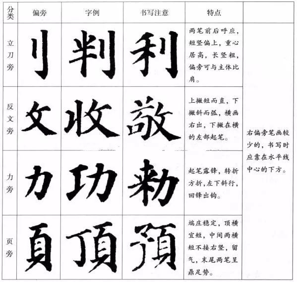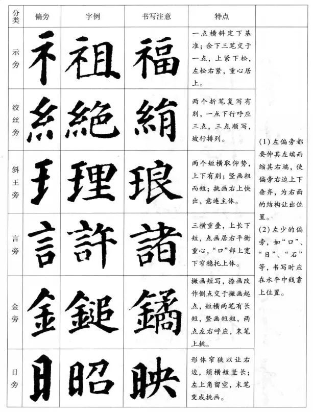 (3)左偏旁:左右偏旁在字中起支撑重心和平衡左右轻重的作用。