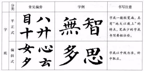 (2)字底:起撑托字身的作用。只有撑得住、托得稳才能使被撑的部分安稳端庄。
