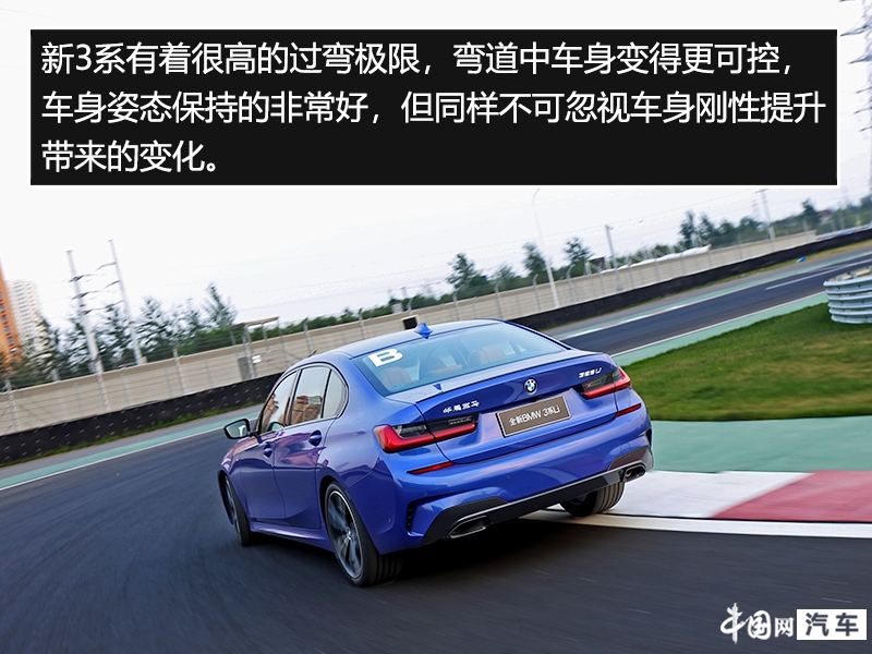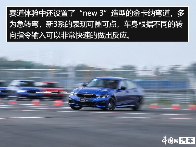 赛道体验中还设置了“new 3”造型的金卡纳极限弯道,多为急转弯,这可以反映一辆车的灵活性以及转向。新3系的表现可圈可点,车身根据不同的转向指令输入可以非常快速的做出反应,丝毫没有拖沓的感觉,表现非常从容,可以清晰的控制并掌握车头的指向与行进的方向,这种感觉真的很棒,这也就是所谓的“人车合一”,并且实际感受并不像一台轴距为2961mm的车,显然加长的轴距没有给操控“拖后腿”。