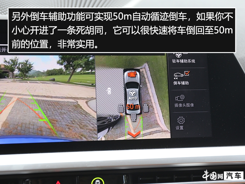 另外倒车辅助功能可实现50m自动循迹倒车,整个倒车过程仿佛时间发生倒流一般,如果你不小心开进了一条死胡同,它可以很快速将车倒回至50m前的位置,记者在两天的试驾过程中多次使用到该功能,总体来说该功能的使用场景还是很多,而且确实好用,比起人为倒车它有着更高的精准度以及速度,可以非常放心的全权交给它来完成。