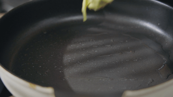 再轻轻晃动平底锅,底面金黄后翻面。