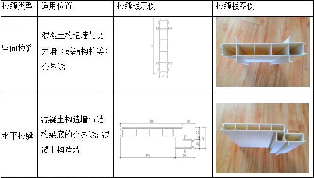 结构拉缝安装前要仔细核对施工图,不能漏放,且水平拉缝方向不能放反,且一定要在合模前对结构拉缝材料安装质量进行验收。