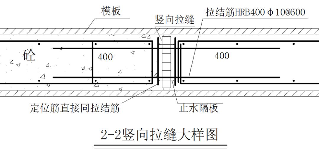 部分结构拉缝截面400MM的部位,用两块宽200MM的拉缝板并排放好,并焊接定位筋。定位筋直径同拉结筋。