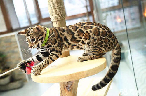孟加拉豹猫比较喜欢运动,应该在饲养的地方增加一些猫爬架,作为它们的运动场地。合理的运动对于保持孟加拉豹猫全身的肌肉感和完美的弹跳力功不可没。