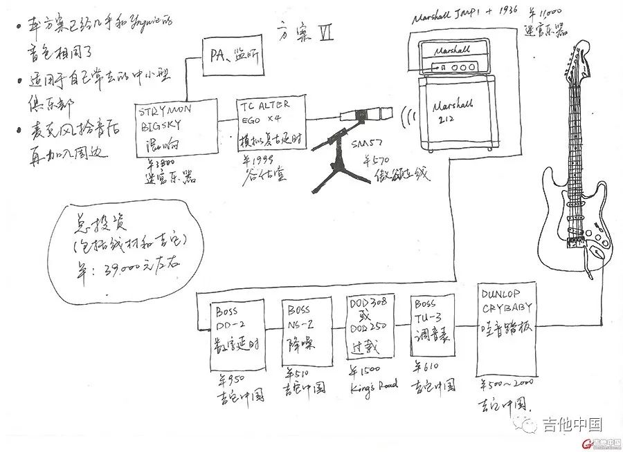 方案二:这套方案是给经济不太充裕的朋友准备的。优点就是便宜好用而且设备链简单,音箱不贵而且有牌子,找个麦克风拾音还能胜任小型的校园演出。缺点就是音色比较假,设备没逼格而且丑。但是没办法,有多少钱办多少钱的事儿不是?