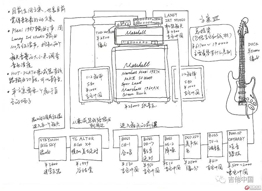 方案六:从这个方案开始,渐渐进入了略微发烧的地步。我们开始要考虑用原汁原味的箱头失真了。Yngwie用的箱头是Marshall Plexi 1987x MKII 50Watt Super Lead,这个不错!