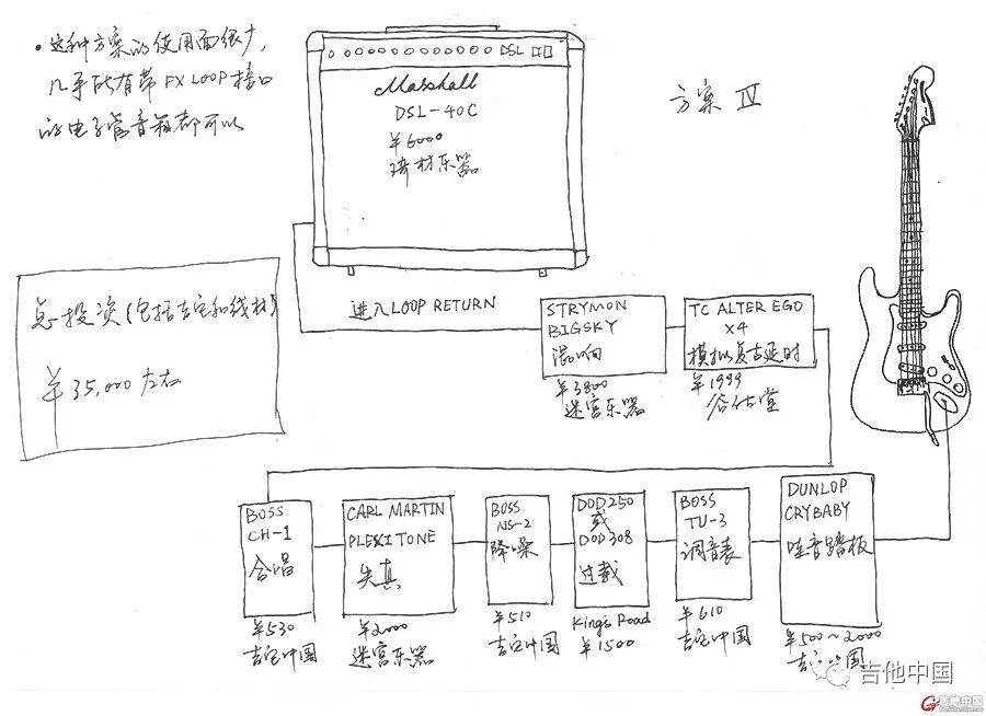 调节方法和方案3基本箱头吧,箱子上因为要接进LOOP RETURN,所以基本上就没啥要拧的了,有条件的话可以考虑配一个低阻抗或者全阻抗的音量踏板,你问我为什么没配一个?因为穷。