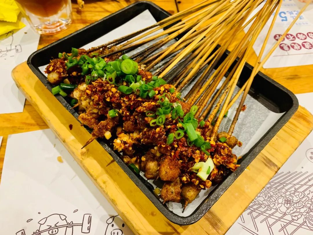 例如重庆烧烤界的扛把子九村烤脑花,靠一道重庆特色的烤脑花行走江湖十几年;成都新式川派烧烤独门驿烤肉,用一般烧烤店极少用的鹅肝作为招牌,提升烧烤价值感的同时,让人印象深刻。