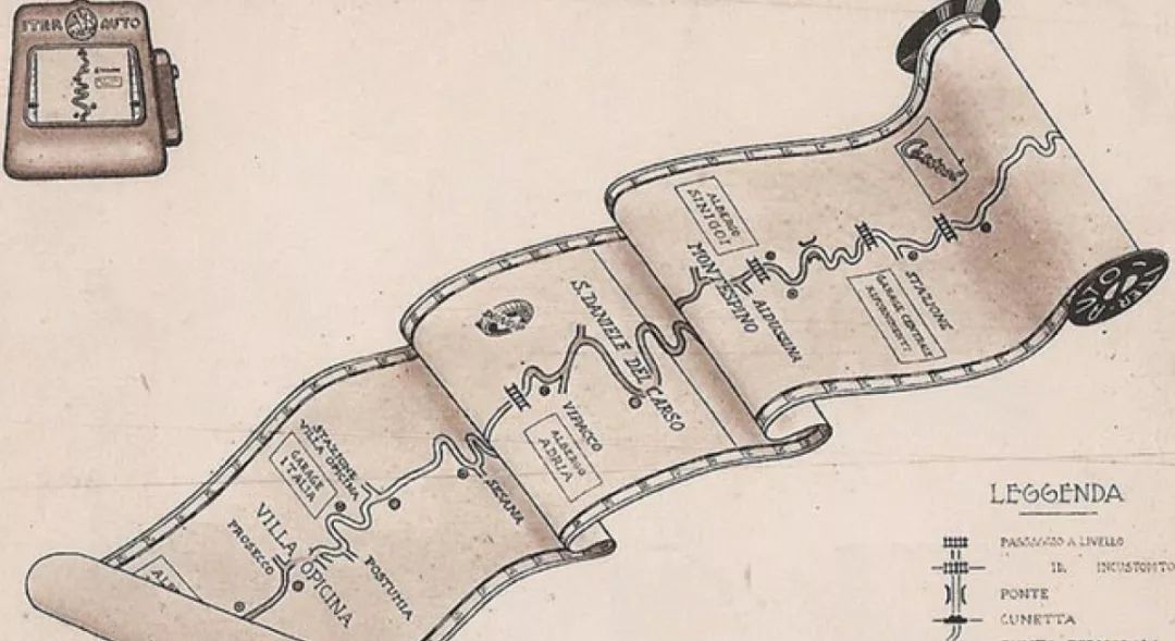 同一年,一款名为Iter Avto的导航系统也得以问世,它不像我们现代的导航系统基于卫星定位和电子地图,而是将区域性的纸质地图卷进一个小盒子之中,行驶途中地图会随着车辆运动及车速展开。
