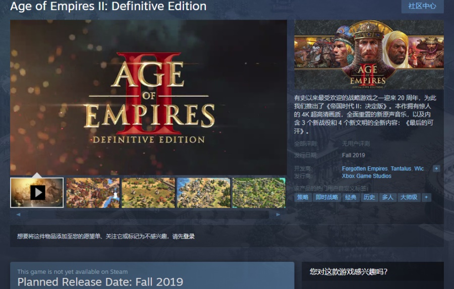 《帝国时代2:决定版》Steam页面:传送门