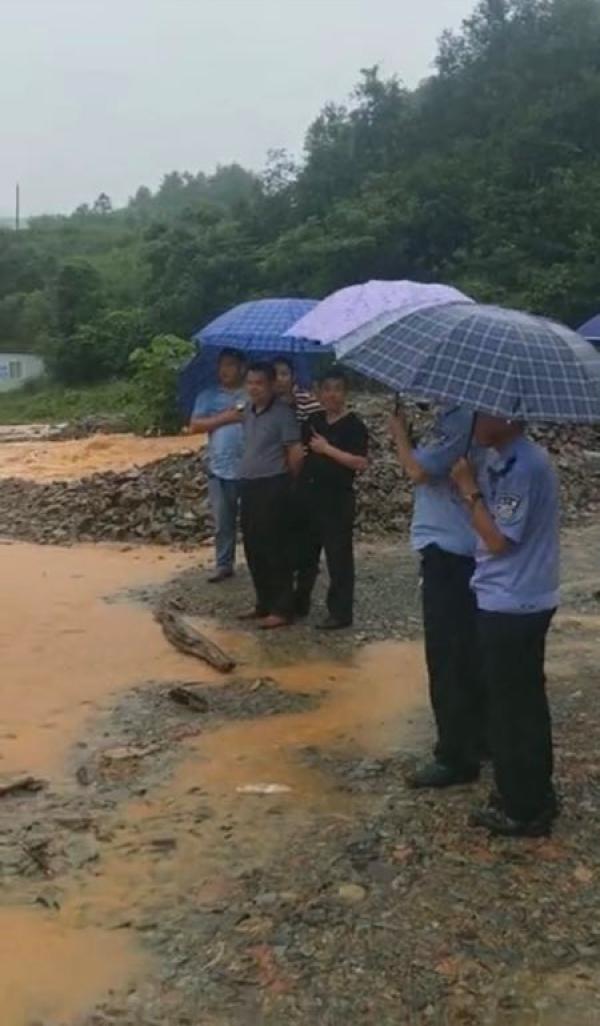 杨璟说,当时有一辆五菱宏光面包车要强行通过被卡在桥上不能动,天还在继续降雨,水流量大,车辆随时有被洪水冲走的危险,遂上前指挥。
