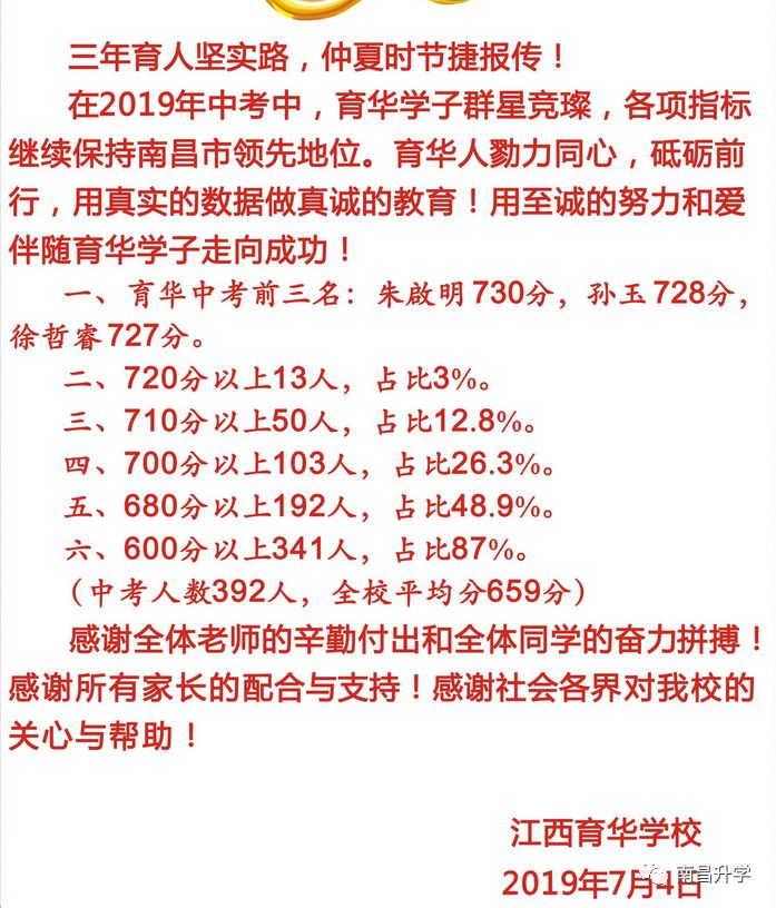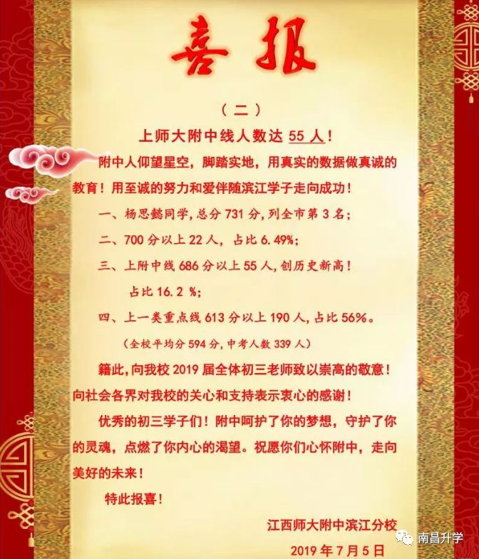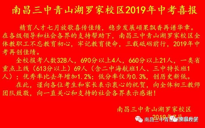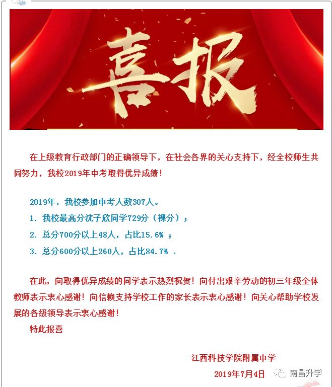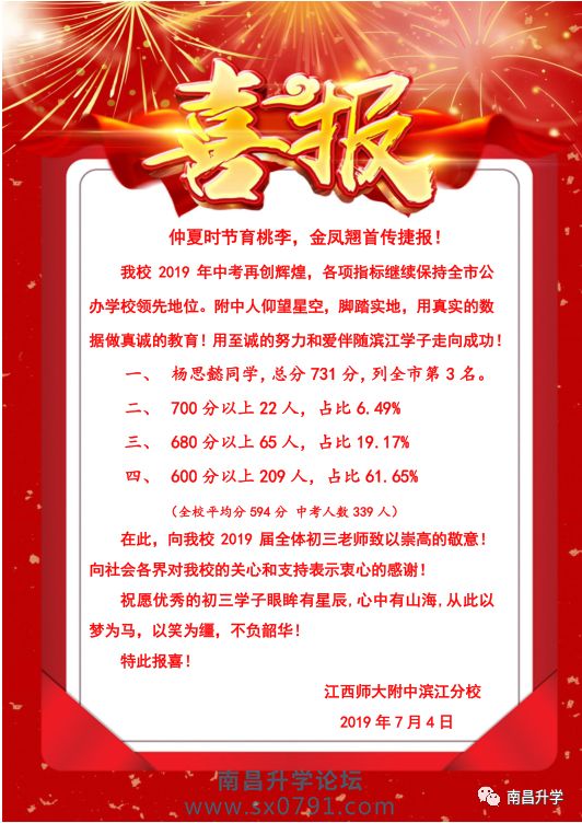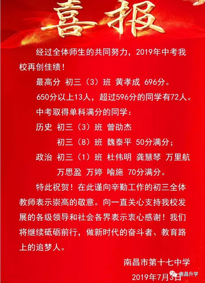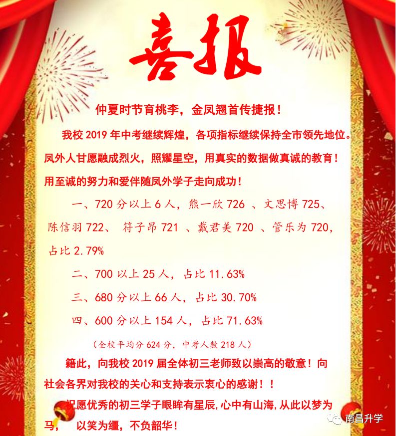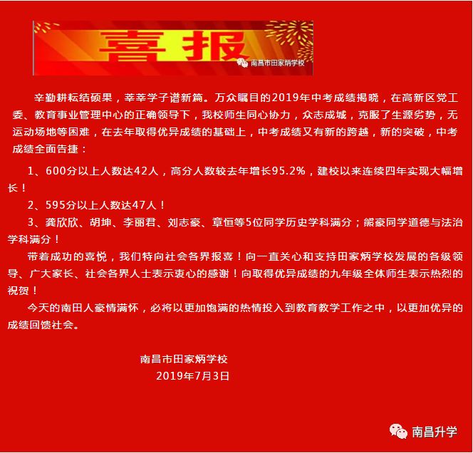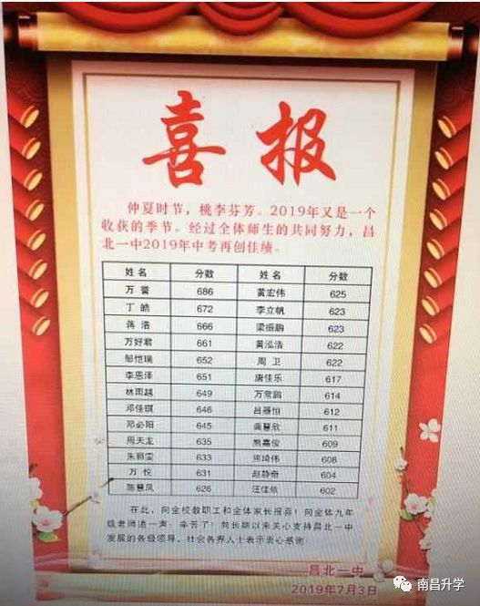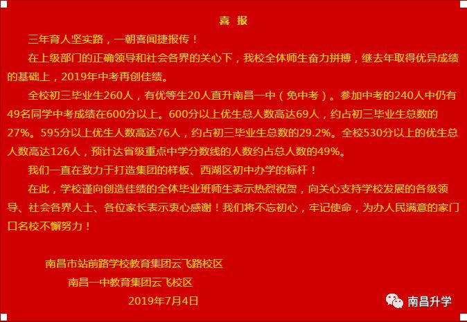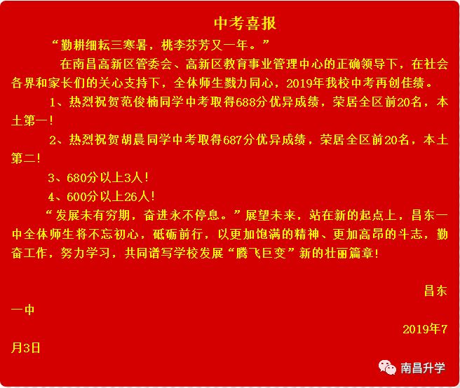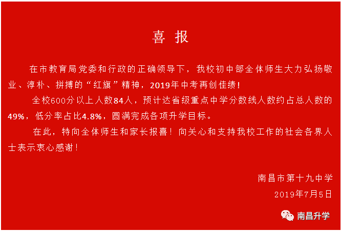 附2019年南昌各大初中学校中考喜报(截止7月7日最新最全喜报):