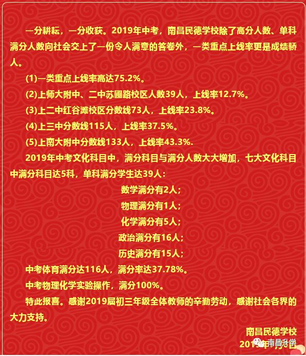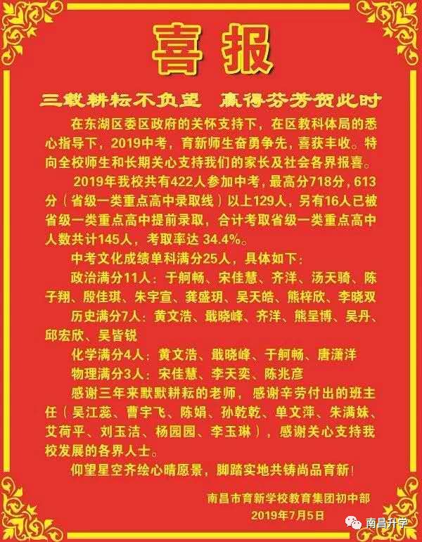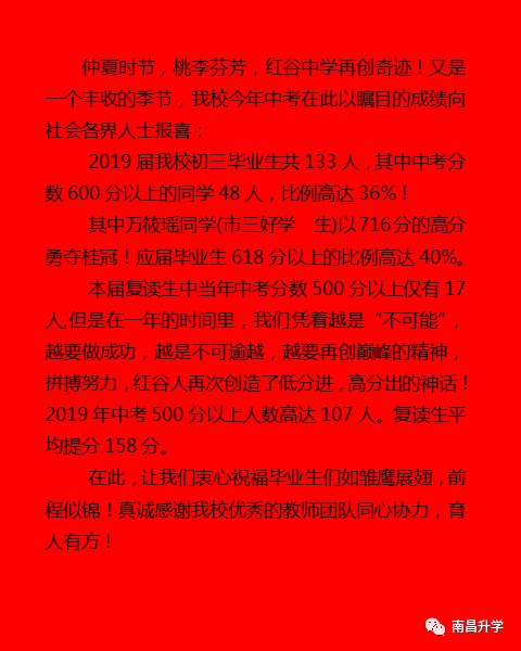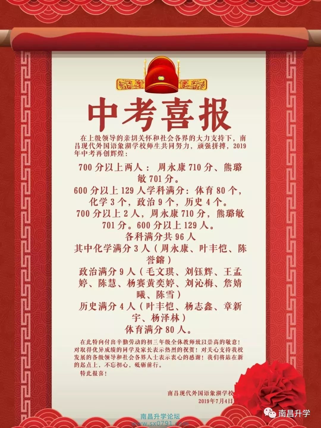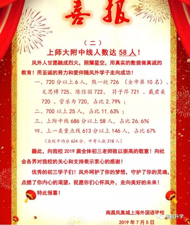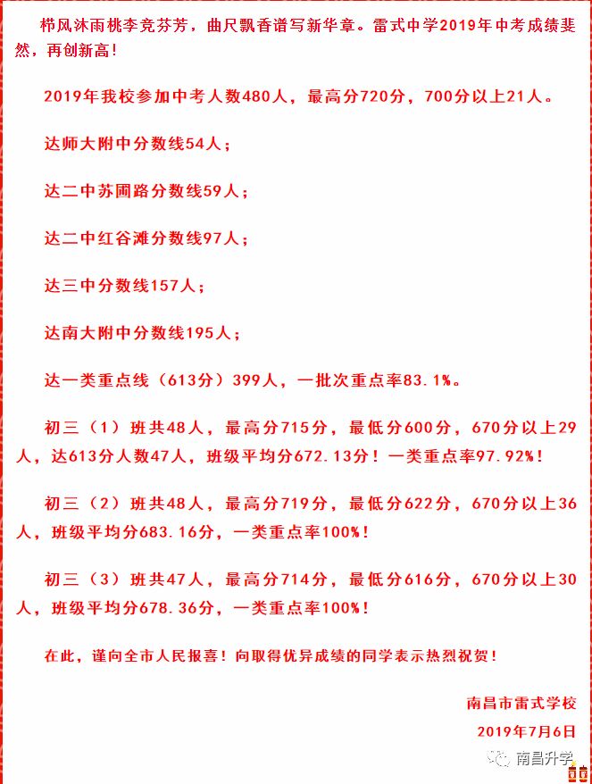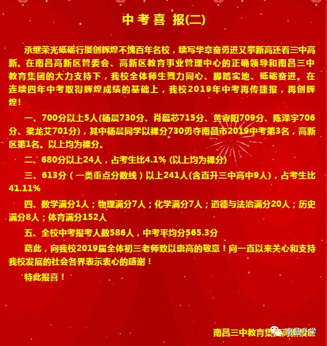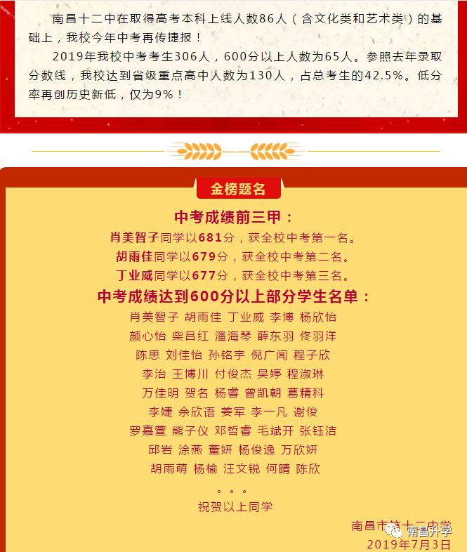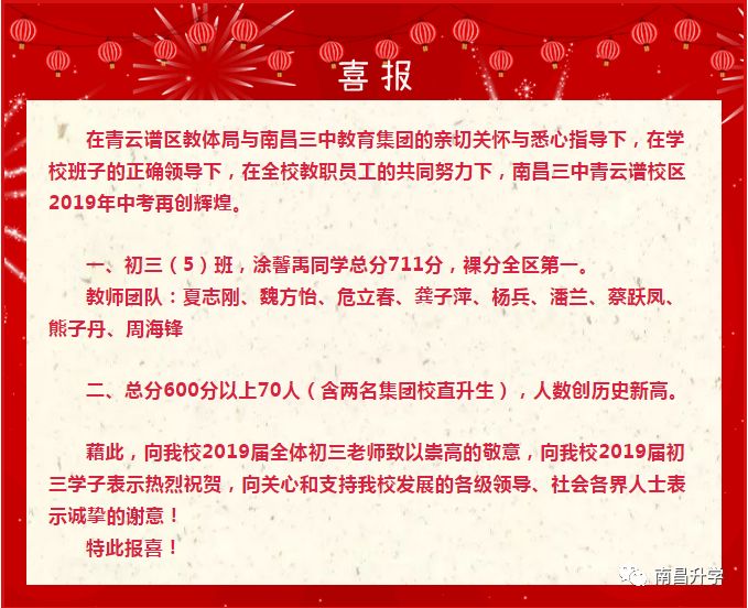 附2019年南昌各大初中学校中考喜报(截止7月7日最新最全喜报):