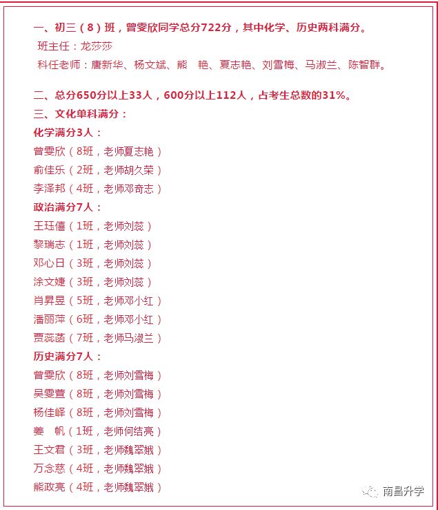 阿西根据最新南昌各大初中中考喜报进行了数据汇总,各位家长请看下图!
