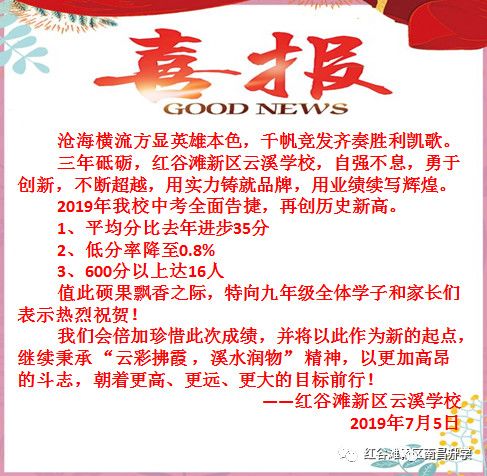 在青山湖区教体局的正确领导下,在社会各界的关心支持下,经过全校师生共同努力,我校2019年中考再传捷报,成绩又创新高!