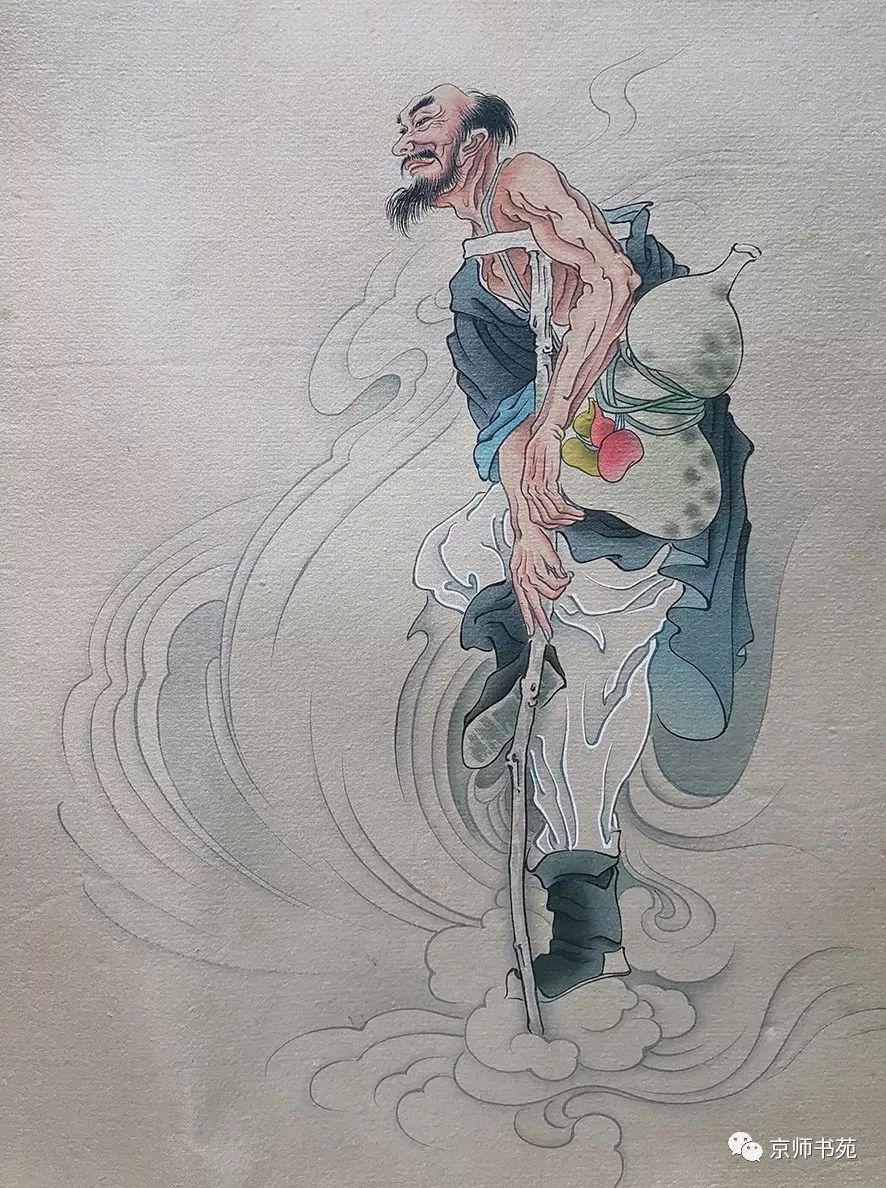 道教题材的人物画有仙道故事、道教人物和道场画之分。道教画中最为常见的是对于神话传说中“八仙”的描绘,“八仙”是道教供奉的民间广为流传的八位得道仙真;钟离权、张果老、吕洞宾、李铁拐、何仙姑、蓝采和、韩湘子和曹国舅。