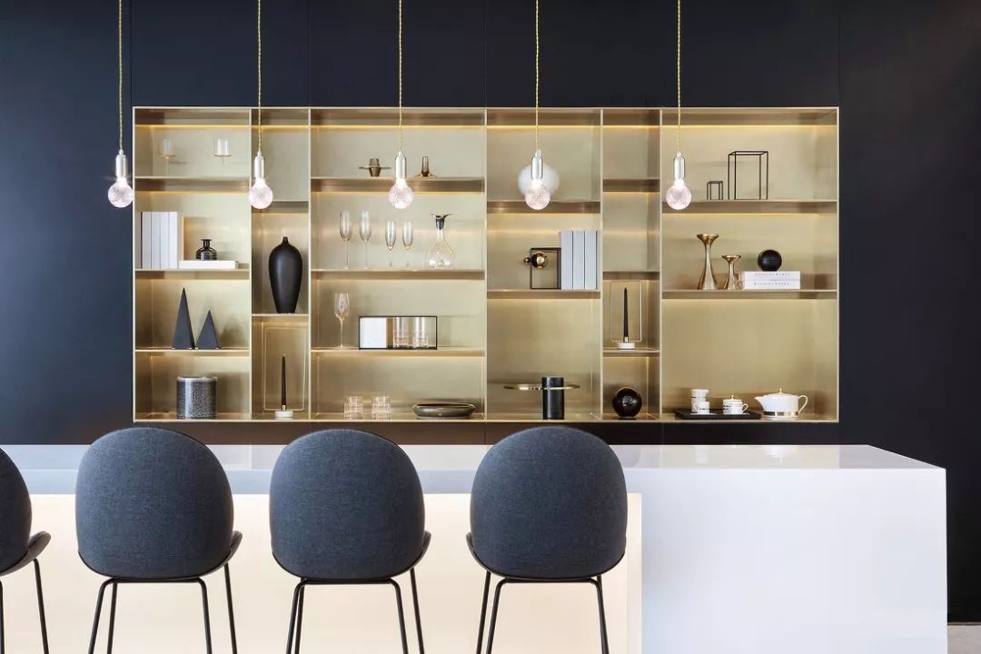 整个空间蕴含大量的设计细节,比如:纹理自然的大理石元素,与满载光泽的金属产生碰撞,总是带有一丝令人着迷的精致感。