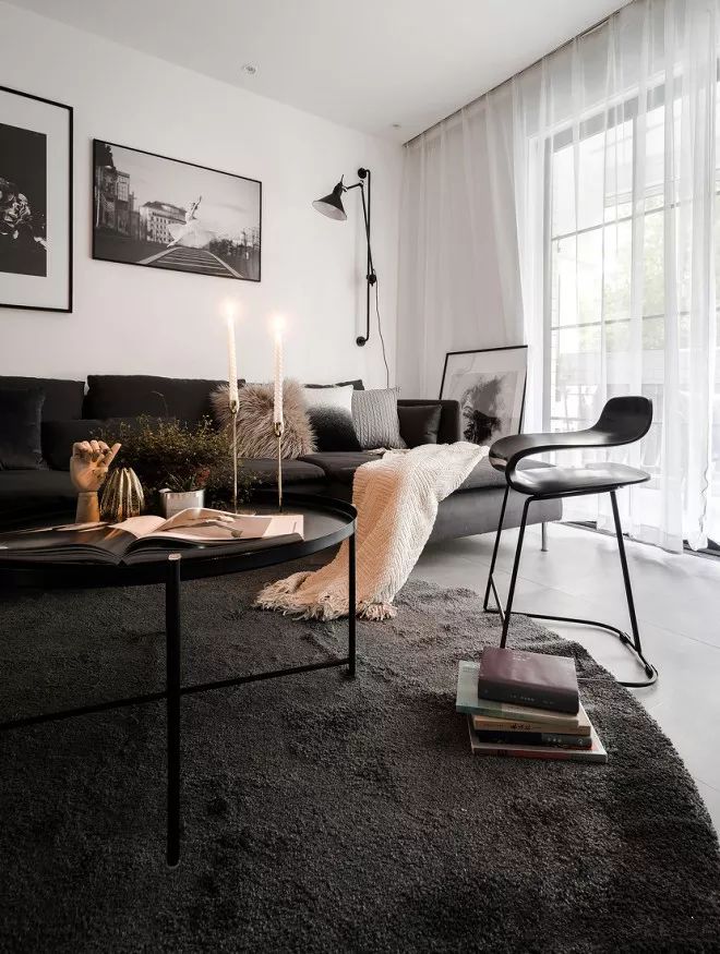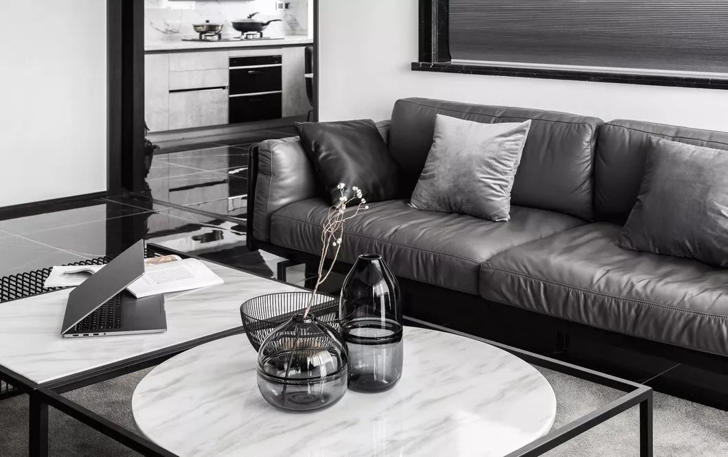 局部运用黑色、碳灰色形成色彩上的对比反差,再加入跳跃的亮色加以点缀,将轻奢的气质最大化彰显。