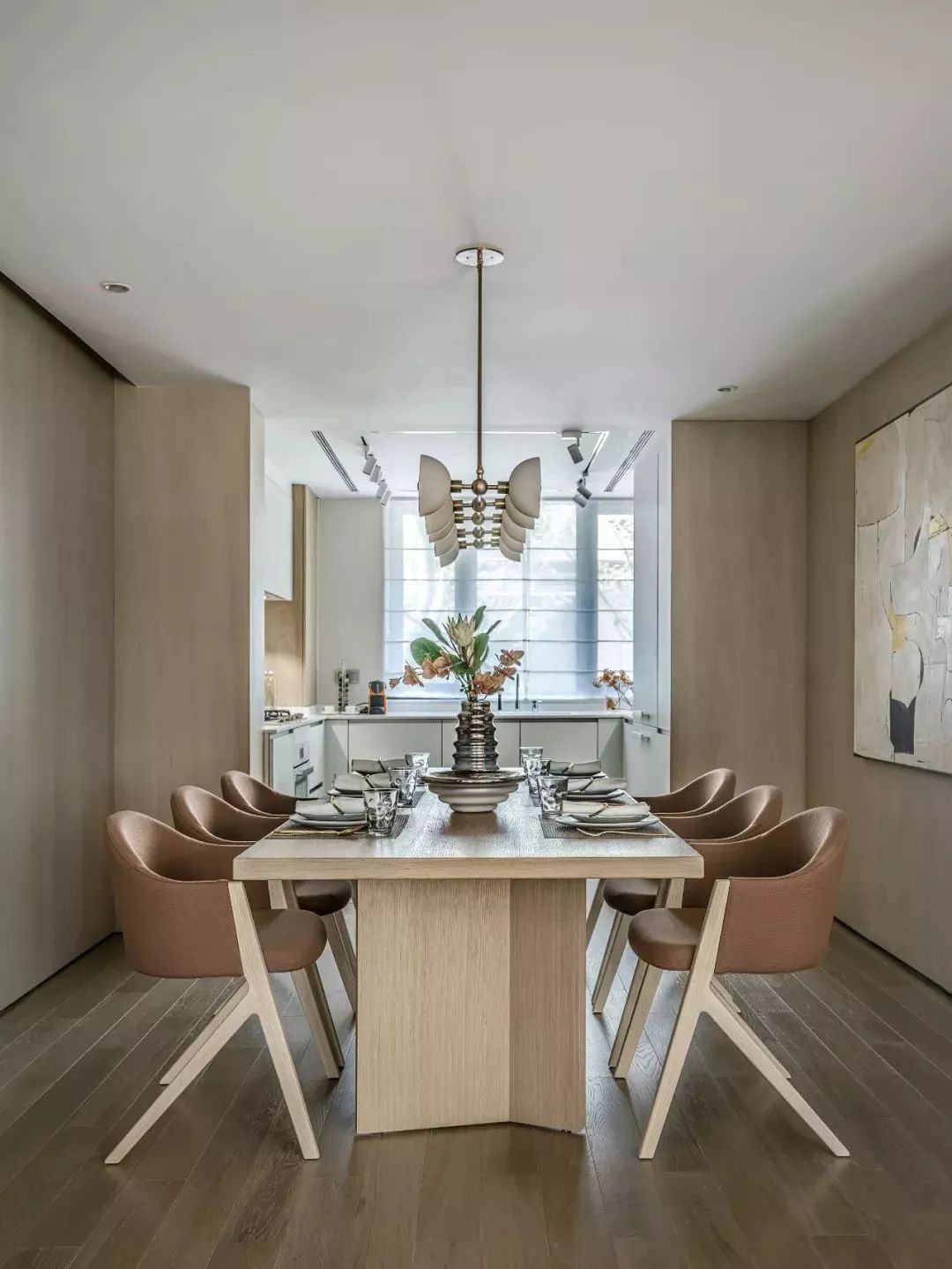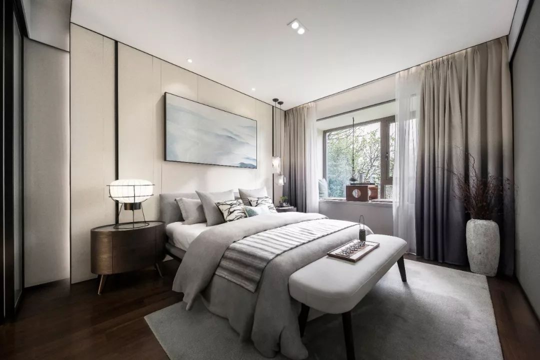 在轻奢风格中,设计师往往采用经典的黑白灰、暖调奶咖色、米杏色与原木色,来呈现优雅大气的空间格调,在视觉上取得平衡与统一。