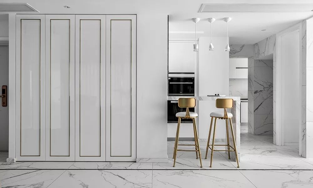 大理石与黄铜元素的搭配,也堪称画龙点睛之笔。一个冰冷自傲、贵气逼人,一个复古精致、温情满满,两者的结合成就了一种很高级的设计方式,不仅可以令整个家增色不少,居住品质又将提升到新的高度!