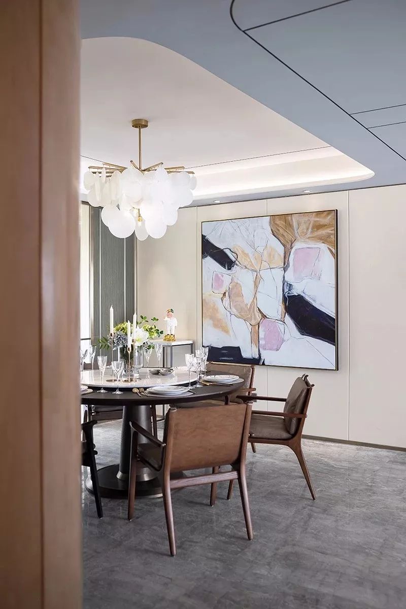 在张力十足的线条勾勒、层次丰富的材质运用以及质感奢华的装饰细节下,为居住者带来一种奢雅的生活体验。