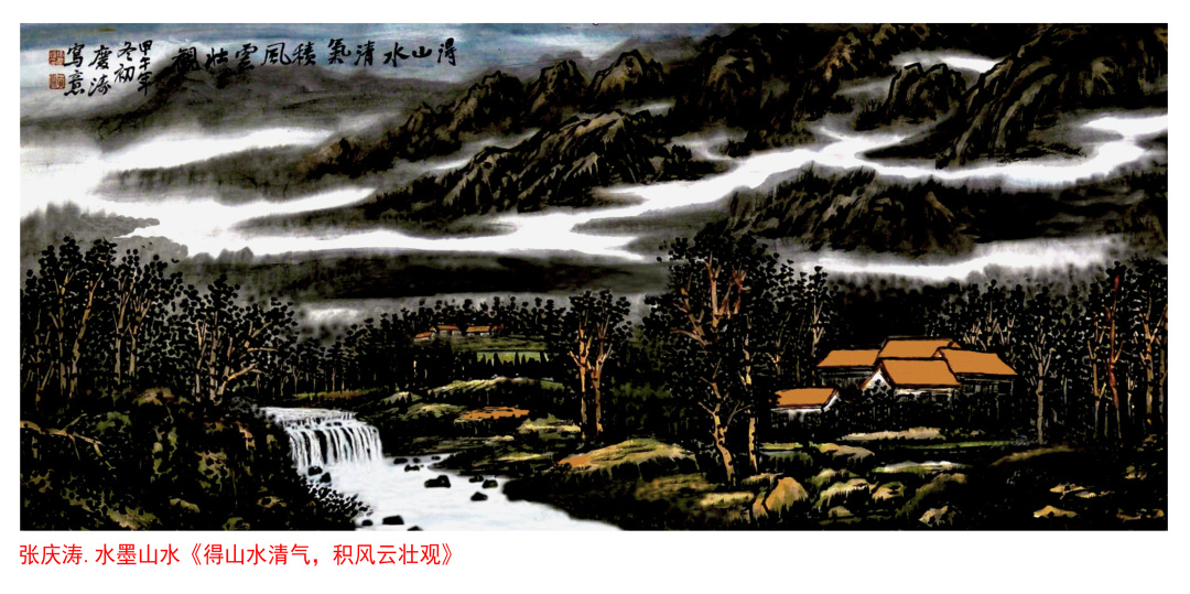 品张庆涛之画作,揣其笔墨之功力,观其山势之脉络,赏其云烟之气象,悟人文之优雅,坐卧起伏苍茫叠翠,清风细雨,行云流水,皆静动生机也。是以摹绘于禅宗之法度。