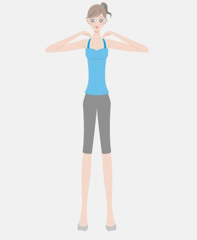 把双手搭在肩上,前后各转动10次,记得手肘要高过肩膀。