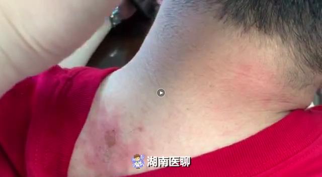 前几天,他在家休息时感觉脖子被虫子叮咬,一巴掌把虫子拍死后就没再留意了。