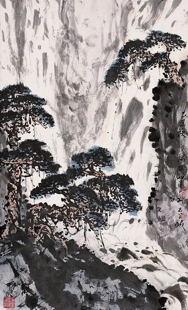 关山月晚年的山水画作品内涵深刻丰富,笔墨苍劲老辣,高风峻骨,意境悠远,这和他一生坚定不移的遵循“笔墨当随时代”的指导思想有密切关系。《山中一夜雨》正是作者晚年山水作品的鸿篇巨制。