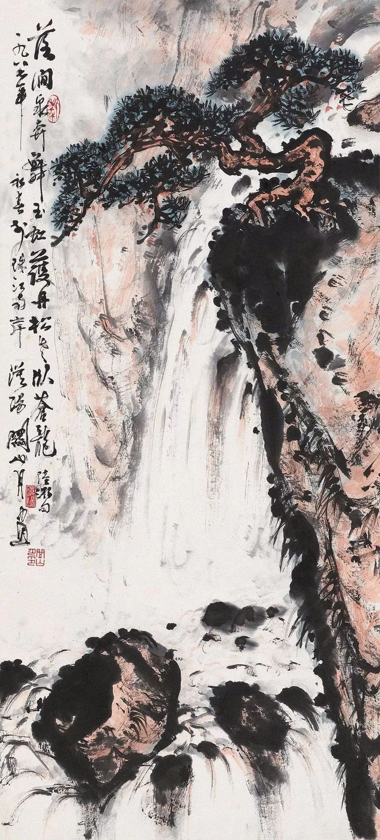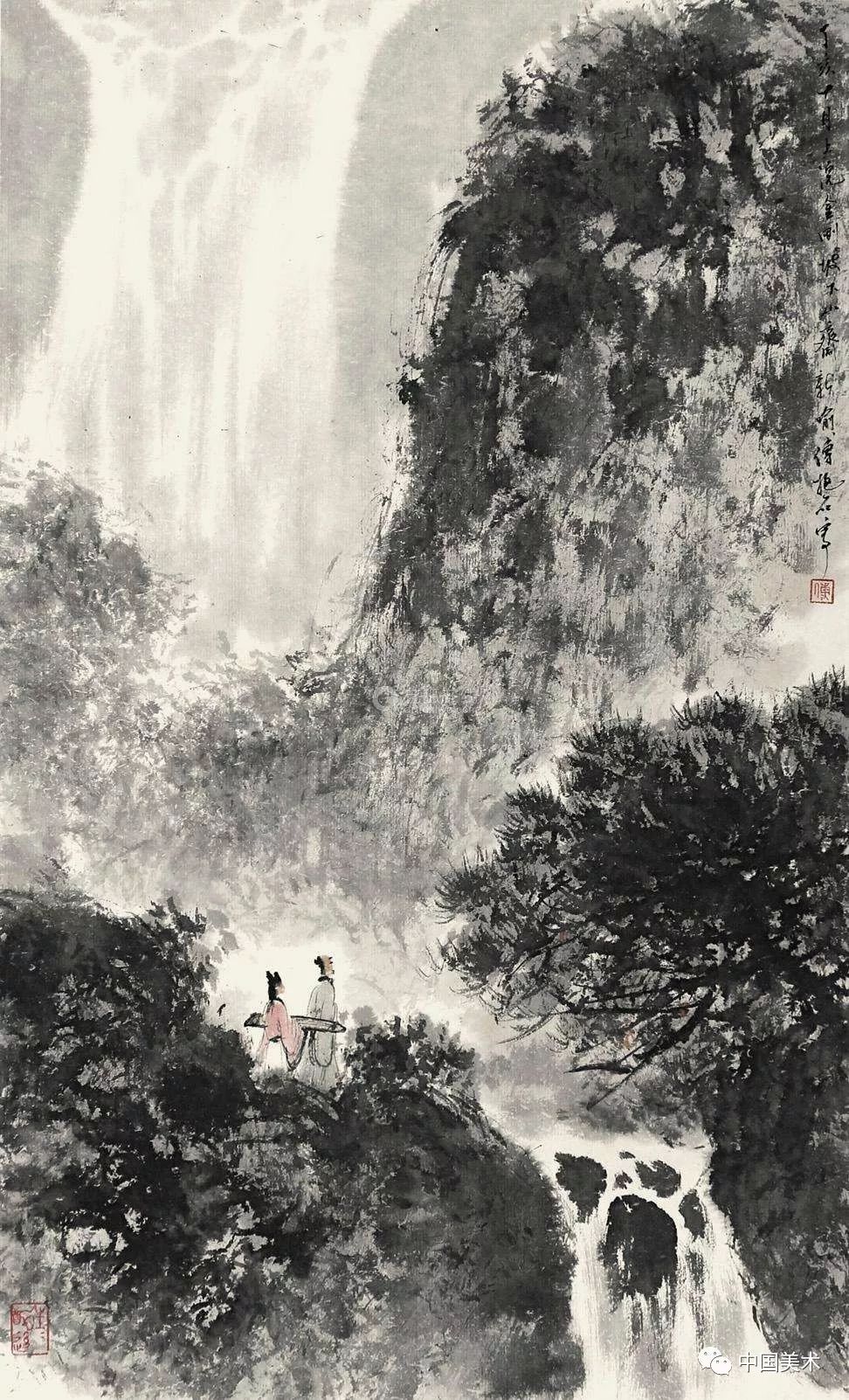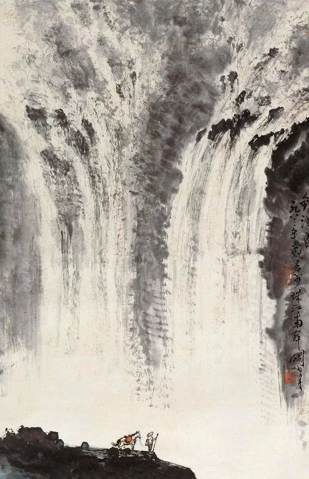 虽然傅抱石和关山月的画风分别属于金陵画派和岭南画派,但两人都以国画山水见长。今天我们就来看看两位大家笔下气势非凡的瀑布。