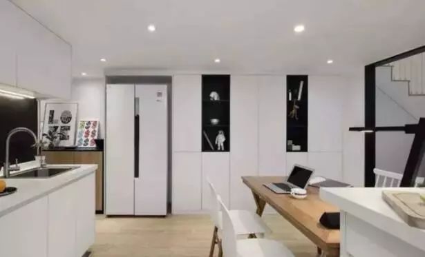 但是这么做,记得冰箱的两边需要20到30厘米的散热空间,否则对电器不太好。另外,如果要做这种嵌入式,记得设计的时候先量好尺寸,千万不能乱来,还要考虑到开门的方向是不是方便。