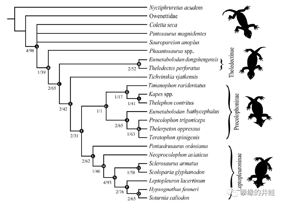 前棱蜥超科主要类群和演化关系。注意右边的剪影的变化。图片来源自[10]。