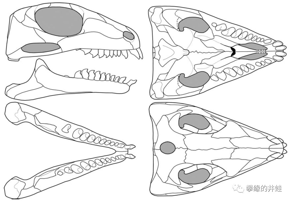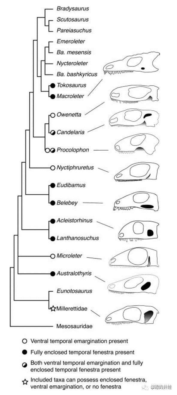 再来说说Acleistorhinidae和兰炭鳄科Lanthanosuchidae。这两类副爬行动物也都有一对非常明显的颞颥孔。有的文献把它们放到同一个演化支——兰炭鳄超科Lanthanosuchidea里[6]。