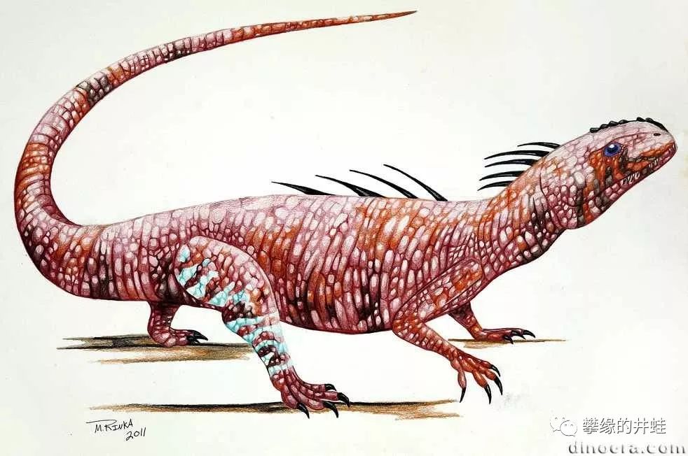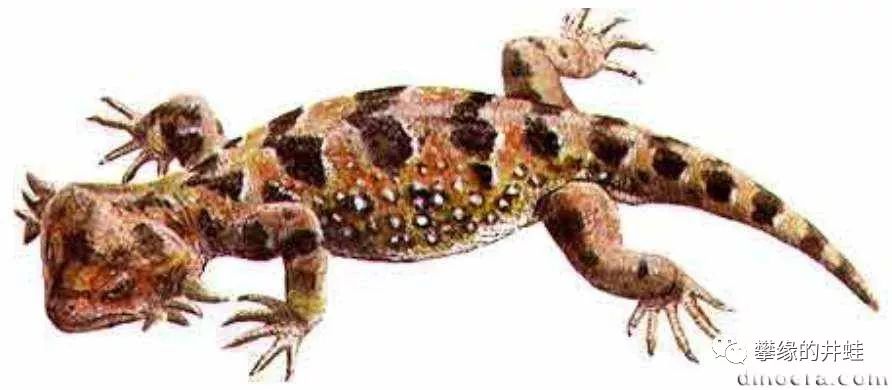想象一下,井蛙和几个朋友回到二叠纪的泛古大陆。仔细确认附近没有危险后(二叠纪中后期已经出现了能对成年男子团体构成威胁的大型肉食合弓兽,从那时起,穿越者们再也不能无忧无虑地在野外乱逛了),大家一边聊天一边散步观景。突然发现一条“蜥蜴”懒懒地趴在地上。没费什么力气就抓住了它。仔细观察之后,大家认定:这是某种鳞鲵(参见第二百三十一回 不尴不尬),属于“古两栖动物”壳椎类。好家伙,连羊膜动物都不是。