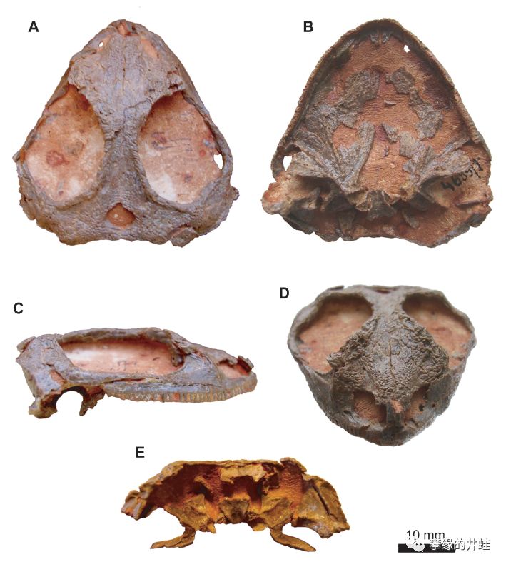 俄克拉荷马州发现的早二叠世兰炭鳄类Feeserpeton oklahomensis头骨化石。它和Acleistorhinus pteroticus确实很相似,尤其是硕大的眼洞和颞颥孔,还有锋利的牙齿。图片来源自[9]。