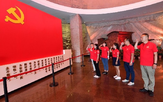 沿习之路东线采访团队在南湖革命纪念馆重温入党誓词▲
