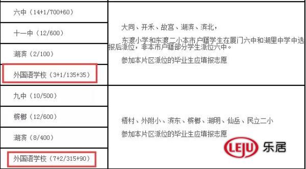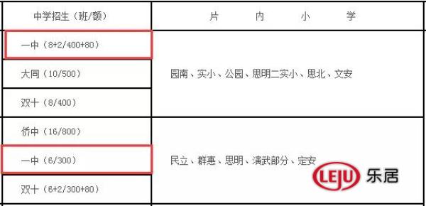 招生片区:(左侧为中学招生班/额,右侧为片内小学)