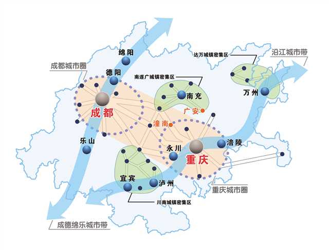 (成渝轴线区(市)县协同发展联盟包括重庆市永川区、大足区、璧山区、铜梁区、潼南区、荣昌区,四川省成都市龙泉驿区、简阳市、遂宁市安居区、隆昌市、安岳县、乐至县等区(市)县。)