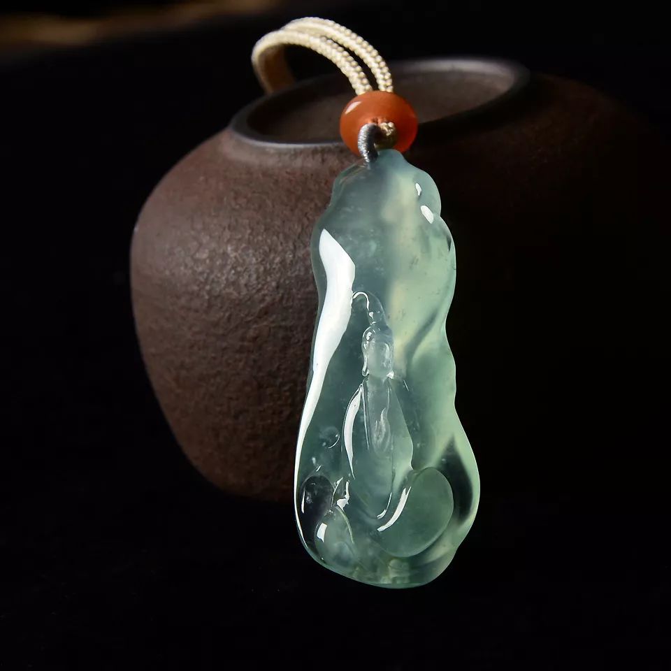 在对材料至精至简的利用上,她的另一件作品《清修无为》更为突出,作品整体随形设计,充分利用翡翠通透明净的材质特点,勾勒线条,虚实结合,很有意味。很好地诠释了“境由心造、相由心生”这八个字。