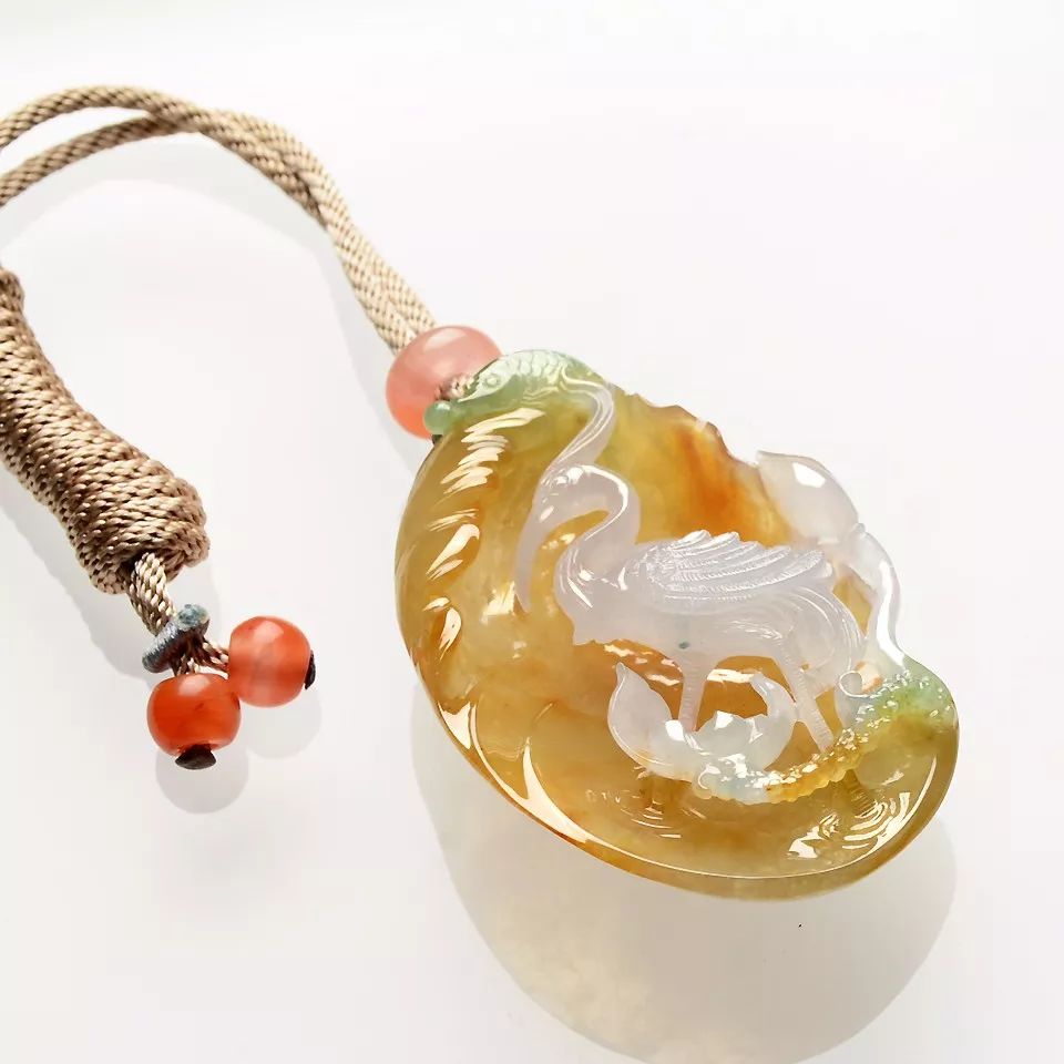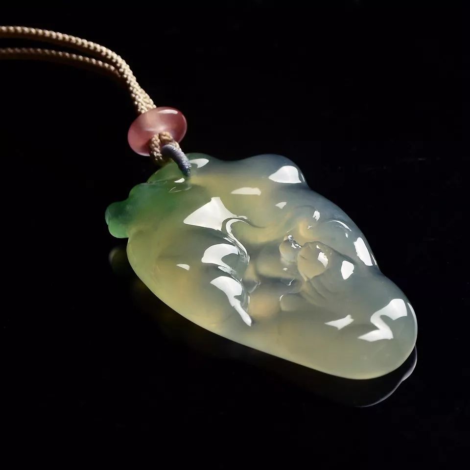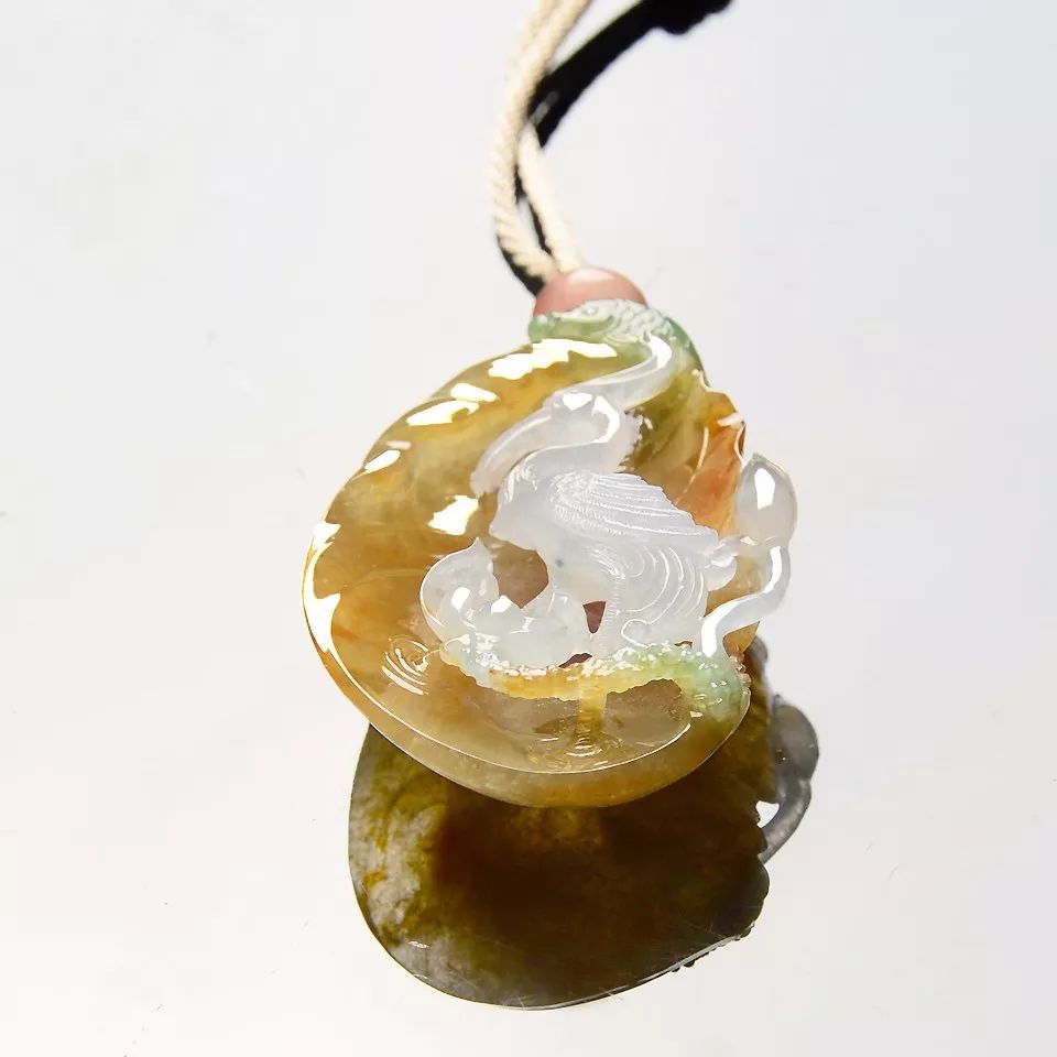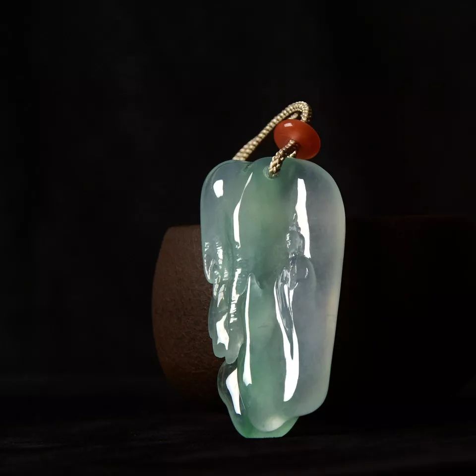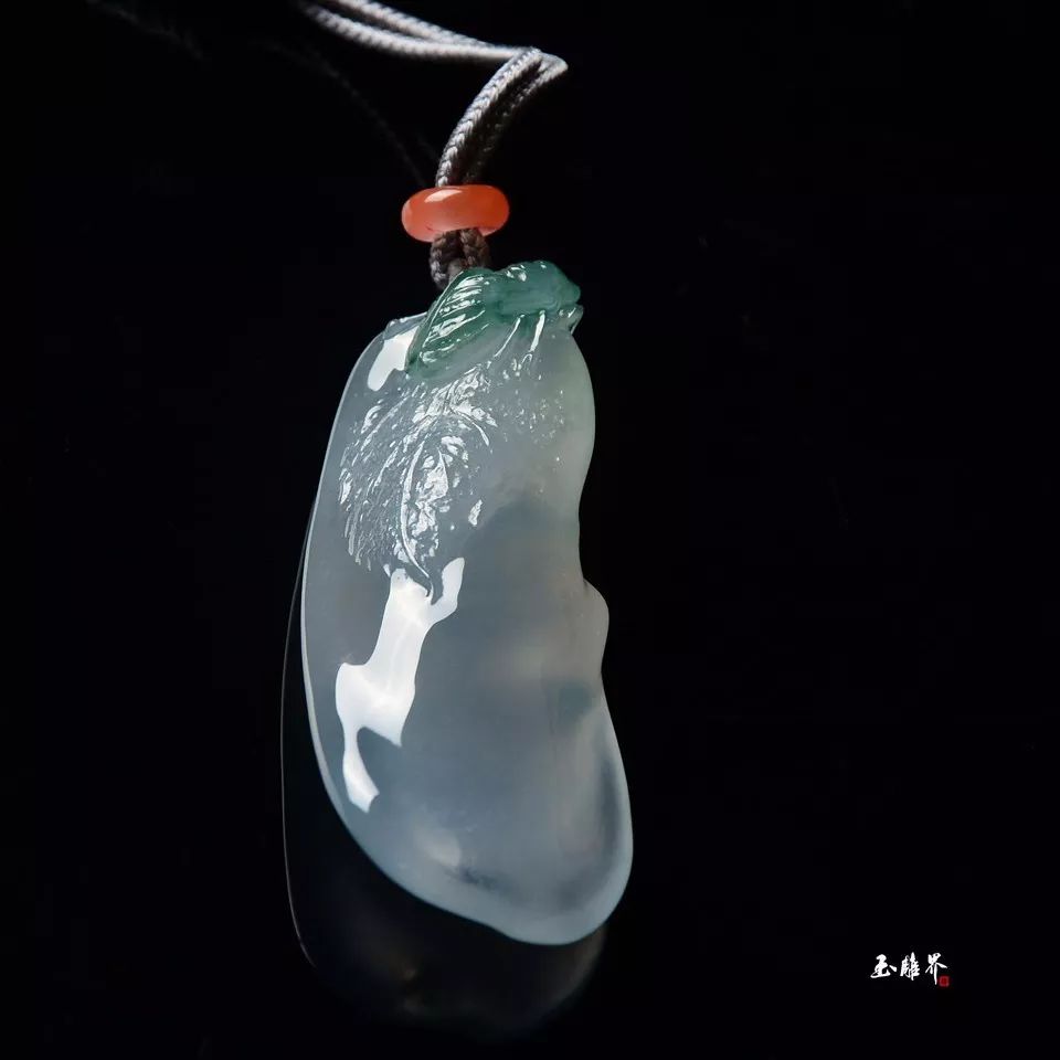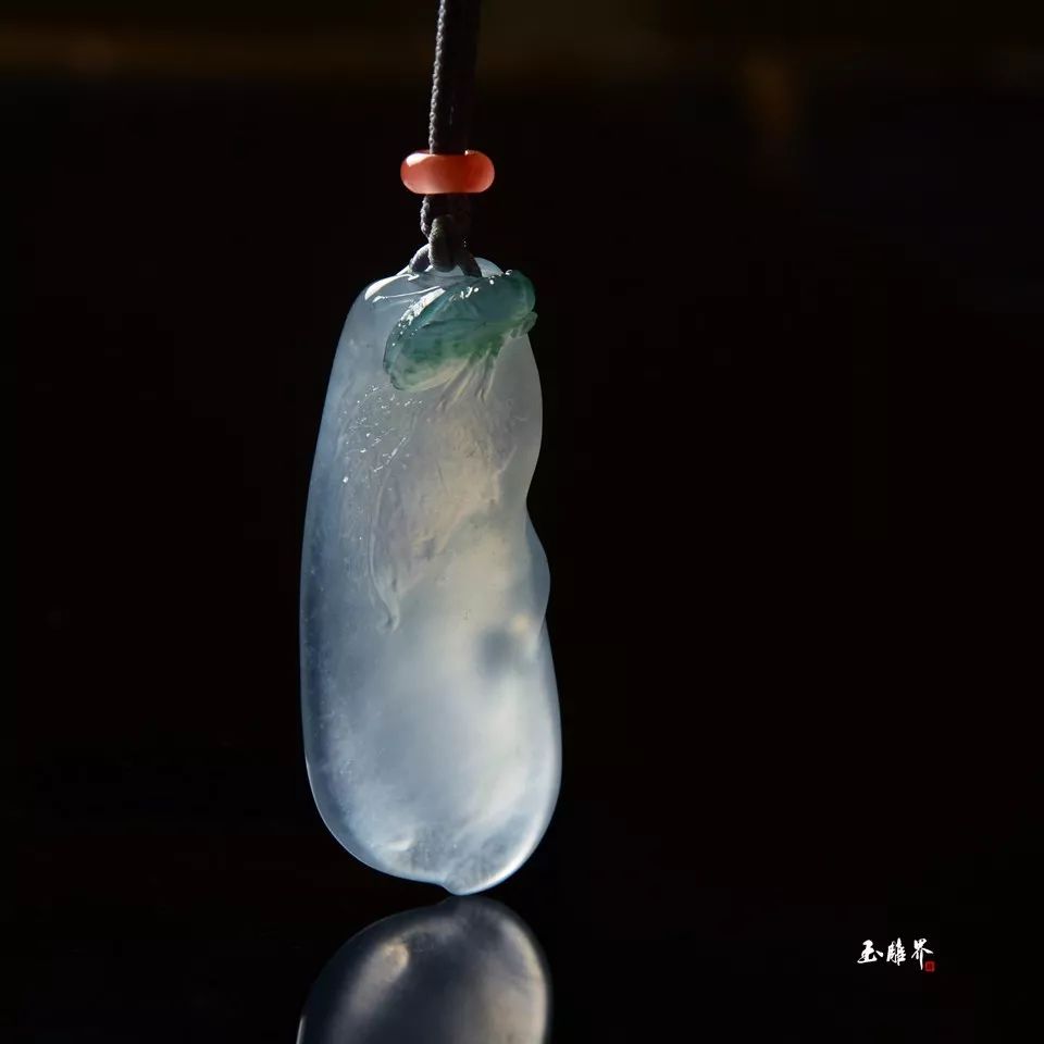 她的作品《一鸣惊人》,俏色巧雕,运用顶部飘花一只蝉爬在树叶上,细节处理精细,但对整块玉雕却未做过多修饰,保留了材料自身通透、灵动的美,既有一鸣惊人之意,也有一种精简的美感。