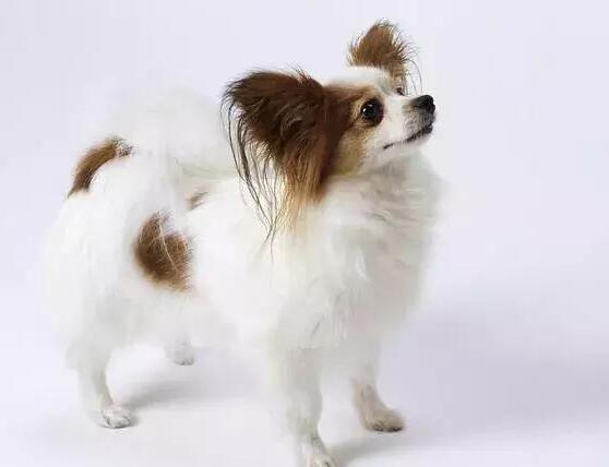 蝴蝶犬的耳朵上覆盖着长长的毛发,直立着,犹如翩翩起舞的蝴蝶。它们性情温和,不喜乱叫,是比较容易饲养的品种,深受人们的喜爱。