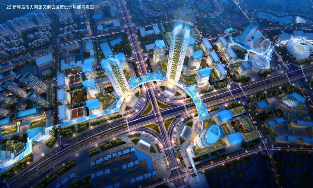 新埠岛活力商旅文创区城市设计局部鸟瞰图