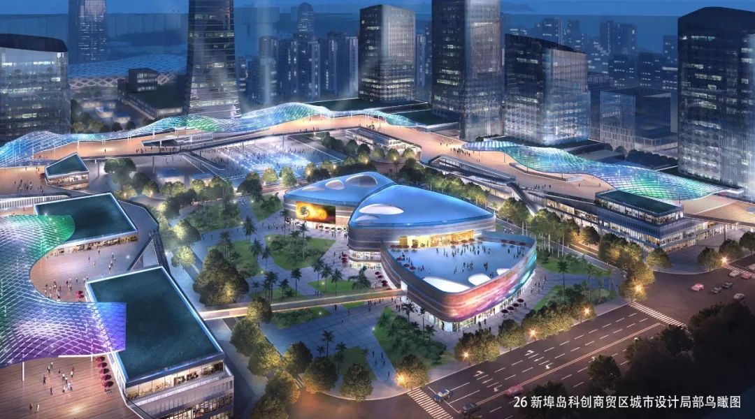 新埠岛科创商贸区城市设计局部鸟瞰图