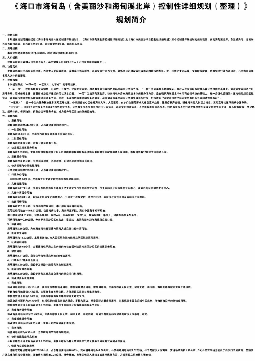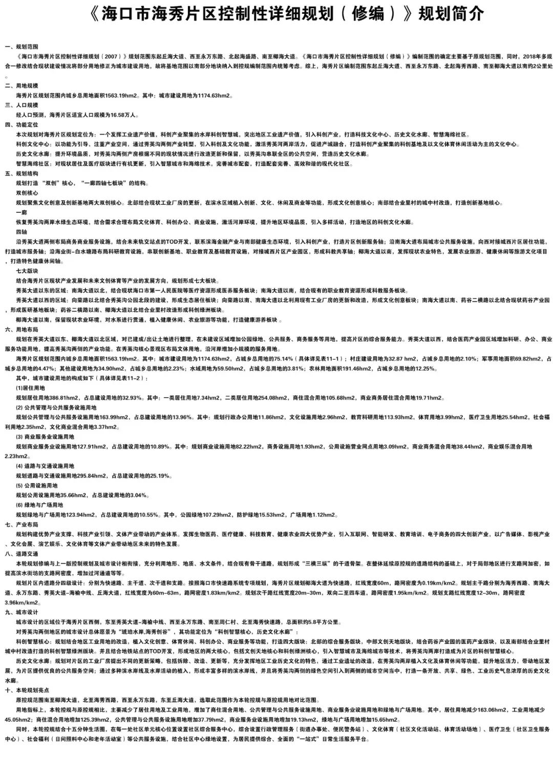△《海口市海秀片区控制性详细规划(修改)》规划简介