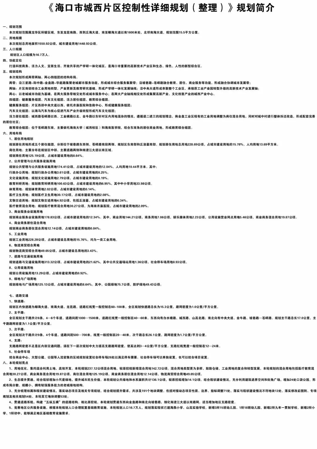 △《海口市城西片区控制性详细规划(修编)》规划简介