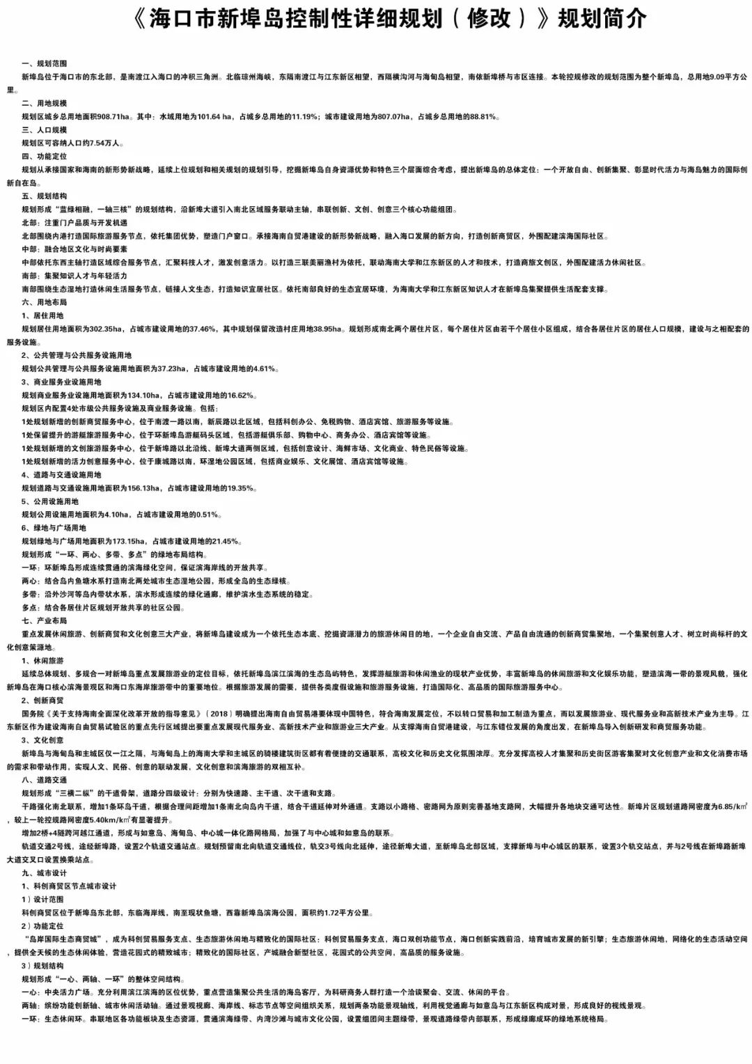 △《海口市新埠岛控制性详细规划(修改)》规划简介