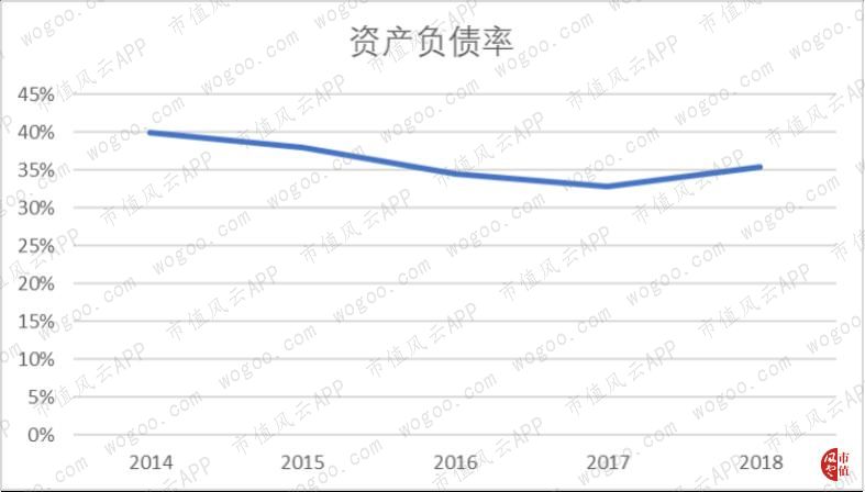 百胜中国的资产负债率在2014年为40%,2018年降至35%。